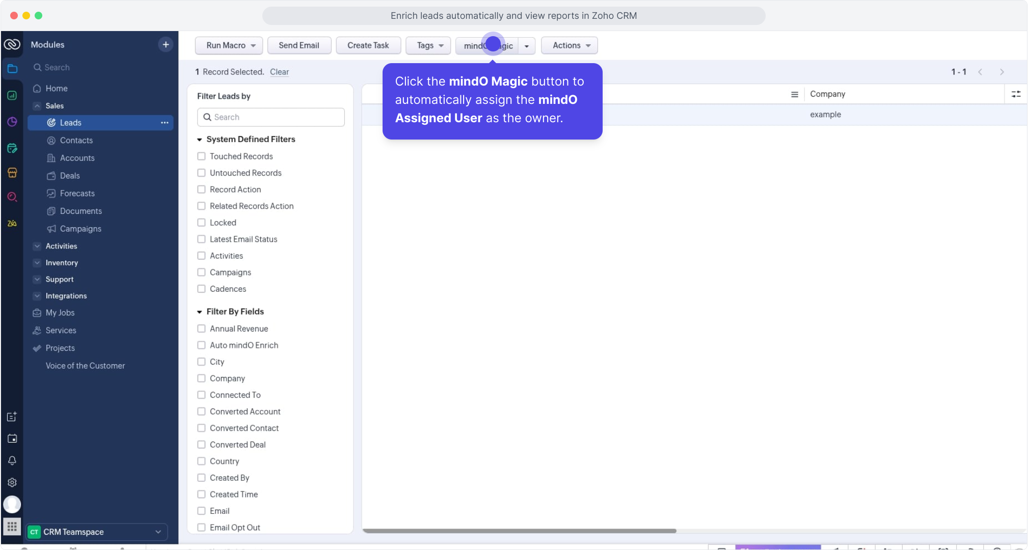 To use mindO Magic, select leads that have already been enriched by mindO.