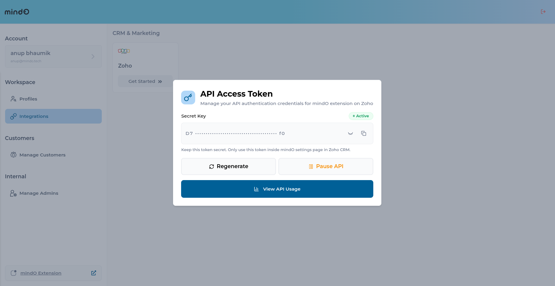 Follow the steps below to connect your Zoho CRM with our platform using the secret key.