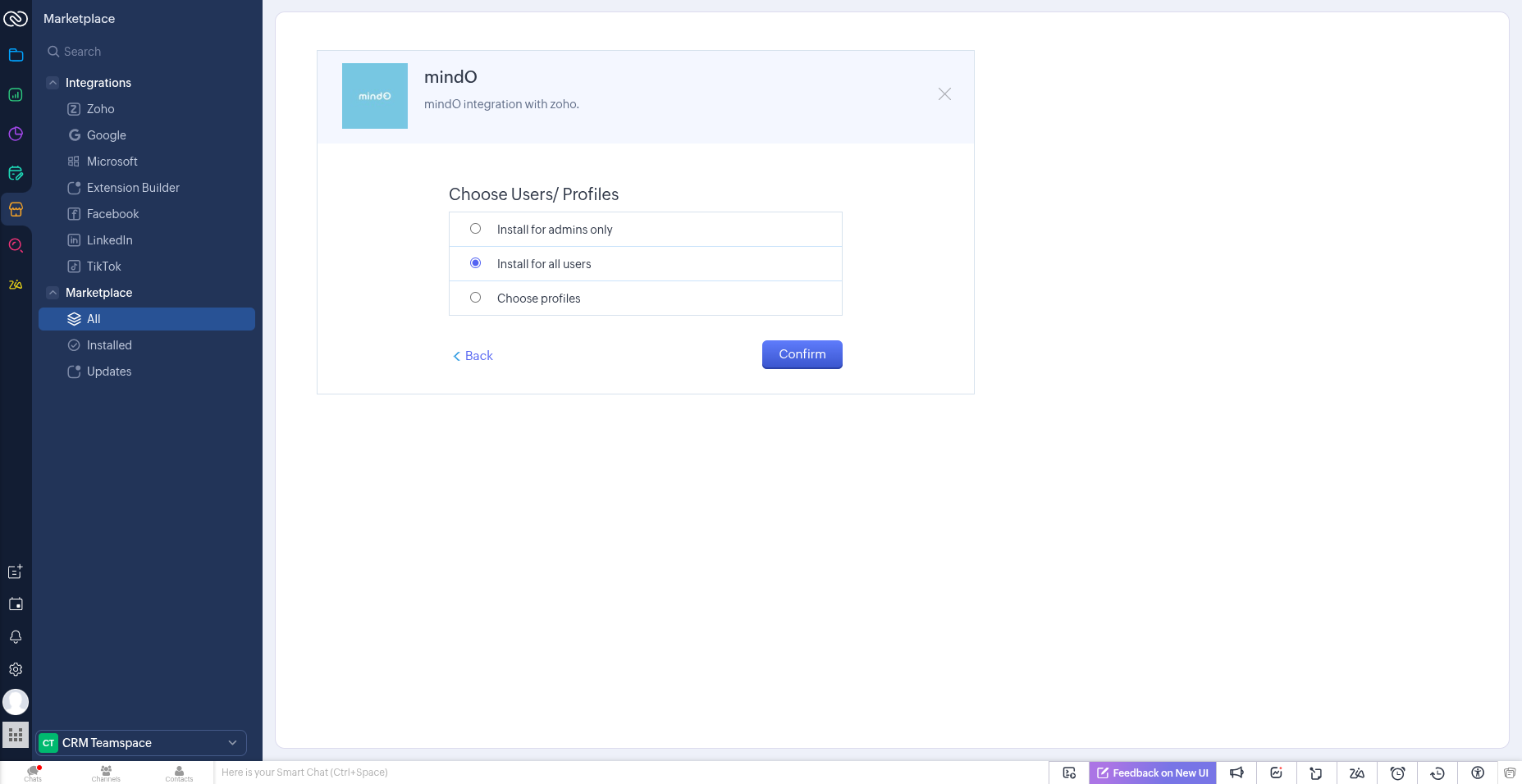- After installation, open Zoho CRM.